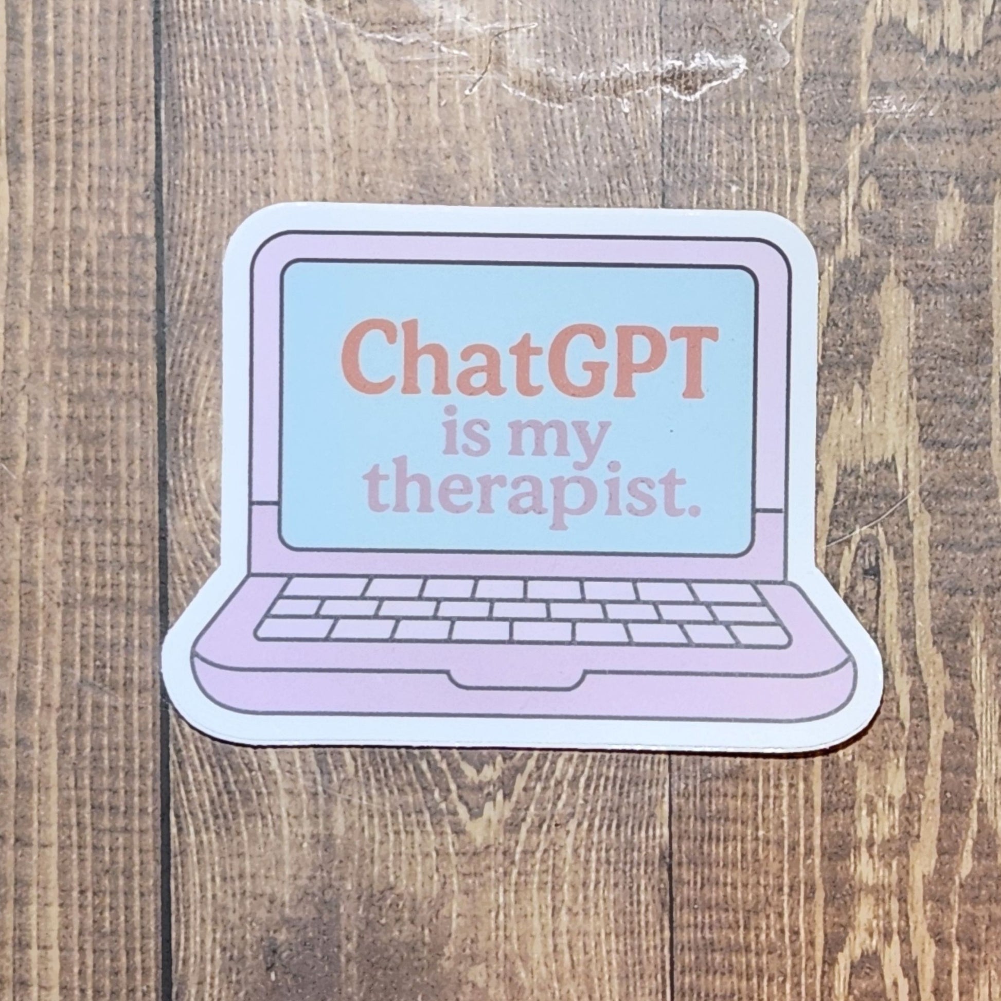 For those of us who treat late-night chats with ChatGPT like a therapy session. This pastel laptop sticker is quirky, funny, and oh-so-relatable—waterproof, durable vinyl, great for laptops, journals, or water bottles.